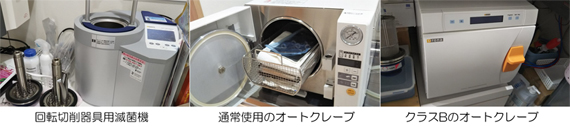 :オートクレーブ(高圧蒸気滅菌機)につきましても、3台配備することにより万全な滅菌の体制を構築しております。